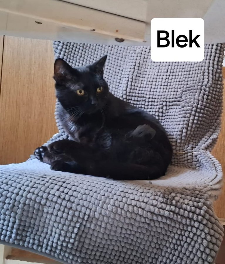 Černý kocour Blek se narodil v prosinci roku 2024. Je velmi zvědavý, pohodový a rád si přivlastňuje lidské pelíšky. Měl plachou maminku, ale on je už kocourek bytový.